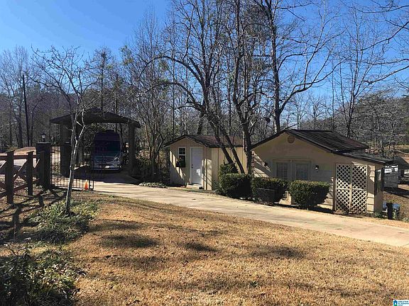 More than a LAKE home. A lake home with so much to offer; including two separate workshops; rv cover; darling little chicken house; decorative fence with metal gates at road. Circular concrete drive. Fabulous home with lots of space for lots of folks or privacy areas for quiet time as needed. Huge vaulted beamed ceiling great room with full wall stone fireplace with electric flamed heater. Several large windows for an incredible view of Lay Lake. 2 bedrooms, full bath, foyer or study area, dining area and galley kitchen on main level. Basement includes master bedroom and bath; laundry room and work room area. Sunlight streams in thru windows in Bedroom with lovely view of lake also. Walkout doors to upper and lower open and covered decks. Great relaxing areas. Extra bedroom with bath and living area with separate , private entrance located in 2nd basement area. A bonus room with separate entrance with fireplace and picture windows with water view. Much more; call to view.