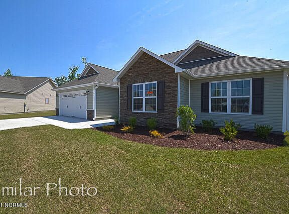 Welcome to highly desired community of Onslow Bay. New construction built by Onslow County's most trusted and preferred builder, featured in Builder 100/ Top 200 Builders in the country. 3 miles to MCB Camp Lejeune's Piney Green gate, 14 miles to New River Air Station and minutes to schools, shopping and dining. Beautiful neighborhood with clubhouse area and community pool. The Vienna floor plan with 3 bedrooms and 2 bathrooms; approximately 1,788 heated square feet. The exterior is quite charming with easy-to-maintain vinyl siding, accented by stone or brick. All surrounded by a sodded front yard with a clean, classic landscape. Concrete driveway and sidewalk lead you up to a welcoming front door, opening to a large foyer. The family room, approximately 18'x21' is perfect for gathering everyone together for movie night! Complete with a vaulted ceiling, ceiling fan, and a cozy electric fireplace surrounded by marble and topped with a custom mantle. The chef in the family is sure to fall in love with the kitchen. Flat panel, staggered cabinets, a bar for extra seating, and a pantry for extra storage. Stainless appliances include a smooth-top range, microwave hood and dishwasher. Kitchen opens to the dining room. The master suite, approximately 18'x12' features a ceiling fan and a huge walk-in-closet. ''Get away from it all'' in the luxurious master bathroom. Double vanity topped with cultured marble counters, full view custom, ceramic tile flooring, separate shower and soaking tub. Bedrooms 2 and 3 are perfectly sized and prewired for ceiling fans. Enjoy those Carolina evenings on the open patio! All backed by a one-year builder warranty from a top, local builder. NOTE: Floor plan renderings are similar & solely representational. Measurements, elevations & specs may vary in final construction. All selections have been ordered, limited selections for buyer to choose. Call L/A to verify. Introducing the Vienna 1788 which features 3 bedrooms and 2 baths at approximately 1,788 heated square feet. The exterior is quite charming with easy-to-maintain vinyl siding, accented by stone or brick. All surrounded by a sodded front yard with a clean, classic landscape. Concrete driveway and sidewalk lead you up to a welcoming front door, opening to a large foyer. The family room, approximately 18'x21' is perfect for gathering everyone together for movie night! Complete with a vaulted ceiling, ceiling fan, and a cozy electric fireplace surrounded by marble and topped with a custom mantle. The chef in the family is sure to fall in love with the kitchen. Flat panel, staggered cabinets, a bar for extra seating, and a pantry for extra storage. Stainless appliances include a smooth-top range, microwave hood and dishwasher. Kitchen opens to the dining room. The master suite, approximately 18'x12' features a ceiling fan and a huge walk-in-closet. "Get away from it all" in the luxurious master bathroom. Double vanity topped with cultured marble counters, full view custom, ceramic tile flooring, separate shower and soaking tub. Bedrooms 2 and 3 are perfectly sized and prewired for ceiling fans. Enjoy those Carolina evenings on the open patio! 2 car garage. All backed by a one-year builder warranty from a top, local builder. Call today! NOTE: Floor plan renderings are similar and solely representational. Measurements, elevations and design features, among other things, may vary in the final construction. Call to verify. Welcome Home.
