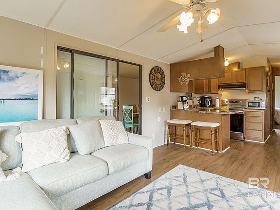 Quaint Coastal Home-This delightful beach home is on a corner lot and offers 2 bedrooms, 2 Living areas, a dining room, 1 bath, and an abundance of living space. The open-concept floor plan includes a newly renovated kitchen with sleek new cabinets, granite countertops, and brand-new appliances, creating a modern and functional cooking space. The expansive sunroom serve as a dining area and a relaxing retreat. This property is in the highly desired, safe, pet friendly, beach neighborhood of Spanish Cove, a coastal paradise gracing the shores of Perdido Bay, just 5 minutes from the Lillian boat launch and only 15 minutes from the sugar white beaches of the Gulf of Mexico. There is something for everyone in this coastal golf cart community that sits on the Alabama/Florida line. Owners enjoy membership with a lifestyle full of amenities and remarkably affordable POA Dues of only $74/Mo (dues paid quarterly) and includes trash pick-up, 24 hours security, and key FOB entry into all facilities. Enjoy two clubhouses, a beach, 500-ft pier, a year-round pool, pickleball and tennis courts, basketball court, fitness facility, laundry room, playground, shuffleboard, nature hiking trails, community-organized activities-aquatic classes, Bingo, card games, live bands, book clubs, game nights, garden club, and group travel opportunities. This is a fantastic choice for anyone seeking a charming getaway or full-time residence. Whether you’re looking for a coastal getaway or a home with extra space and potential, this property offers it all. This is a must see. Buyer to verify all information during due diligence.