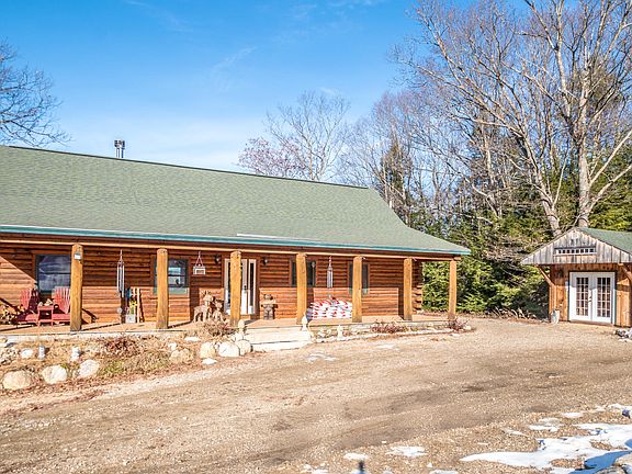 Custom built log home with direct views to Mt. Washington that will have you staring all day at the changes of color in the sky. The starlit nights, with so many shooting stars and fire flies, will captivate you for hours. Set back far off the road giving you all the privacy you need. The home is open, warm and perfectly laid out. The kitchen is open to the living room with a custom crafted slate fire place to cozy up to and a new pellet stove for added comfort. The lower level offers an additional living room with a woodstove, a bedroom, full bath and ample storage. The porch runs along the entire front of the home, then wraps around to the back-deck area where there is much space to entertain and relax. There are two additional cabins on the property that have been set up for so many fun uses. Enjoy snowshoeing, snowmobiling and ATV riding right outside your door.