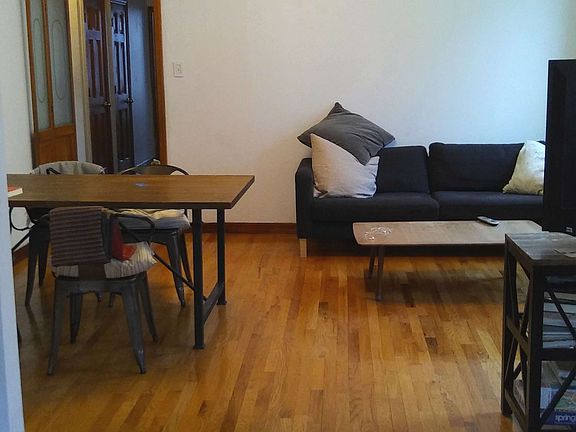 Available June 1, 2017 Live in a Large Two Family Brick home. Spacious 2 Bedroom apt for rent in a private home with exclusive front porch for use. 1,300 sq ft apt features an eat-in kitchen with plenty of cabinetry plus new stainless steel appliances. Hardwood and tiled floors thoughout and tons of closets for maximum storage space. The floor layout is perfect for entertaining with separate dining and living rooms. Beautiful full bath with spa tub and a 1/2 bath for visitors / guest to use. Bedrooms can fit a Queen size bed and there are closets in each room. *All utilities are included in the rent* Cat only - with pet deposit. Parking spot and storage unit available for an additional fee. Block away from the F/G trains and Foodtown supermarket.