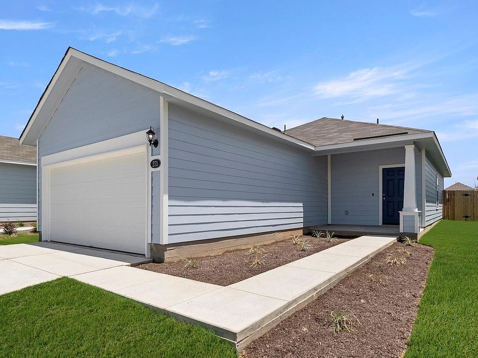 MLS# 1287863 - Built by Brohn Homes - Ready Now! ~ 273 Estallo Way, located in the master-planned Hymeadow community, is designed for everyday living with garage access through the utility room and wood-look vinyl flooring in the main living areas. With interior finishes like white cabinets throughout and raised bathroom vanities with Silestone countertops, the home offers a clean, modern feel. The kitchen boasts durable 3 cm granite countertops, a corner pantry, a single basin sink, 42-inch cabinet uppers, and a gas range. The primary suite features a semi-private water closet, walk-in closet, and walk-in shower. Enjoy plenty of natural lighting when you want it, and utilize blinds included throughout when you don't. Other upgrades included: a garage door opener, tankless water heater, and washer and dryer! Enjoy Hymeadow, where peaceful living meets convenience. Located in Maxwell with no city taxes, enjoy luxury community amenities such as pickleball courts, resort-style swimming pool, basketball courts, parks, and quick access to rivers, outlets, and the charm of San Marcos and Hill Country wine country. And because it’s an energIQ home built by Brohn, you’re getting more home, more quality, and more value—all without compromise.