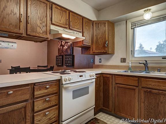 Quiet cul-de-sac location with double-wide driveway, large cedar deck, fenced backyard, and toy storage on side yard. Open floorpan with laminate floors, oak cabinets, new dishwasher, and new carpet in SE bedroom, plus energy upgrades in 2014 including new furnace, on demand water heater, and added insulation in the crawl space. Close to JBER and Tikahtnu Commons shopping area #LoveWhereYouLive.