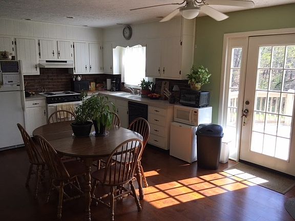 GOOD HOME FOR YOUR GROWING FAMILY. This home features 4 bedrooms and 3 full baths with the master separated from the other bedrooms. The large 12x24 rear deck has composite decking and overlooks a picturesque orchard and your own garden spot. It also has a 13 x 17 rear patio, fire pit, and nice back yard. The kitchen - dining area is light and airy with white cabinets and plenty of windows. The dining area has gas logs. It has engineered wood flooring in the kitchen, LR, and hall. The basement has a work bench and cabinets. The roof is only 7 years old. This home is in good condition and ready to move in. It is in the country, but close to Mount Airy and only 5 minutes to I-77 exit 1 making it easy to work or visit in nearby towns. Buyer to verify internet access. It has a good well and public water connected. PRICED AT $144,000 WITH A NEW 2.5 TON HEAT PUMP TO BE INSTALLED BY OWNER OR AT $138,000 WITH CURRENT EBB / WINDOW A-C.