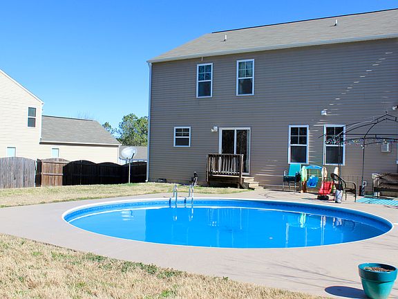 Lovely Clayton home in a great neighborhood! Rocking chair front porch overlooks a quiet cul de sac! Great open living spaces on first floor and awesome bonus room on second floor! Large master suite with dual vanity, garden tub, and big walk in closet. Good size secondary bedrooms! Outdoor entertaining enthusiasts ahoy! Huge fenced-in flat, grassy backyard, patio, in-ground saltwater pool, and shed-turned-bar leaves limitless options to enjoy the rest of summer! Minutes away from the I-40 and 70 Bypass.