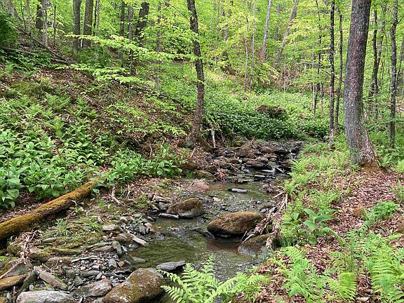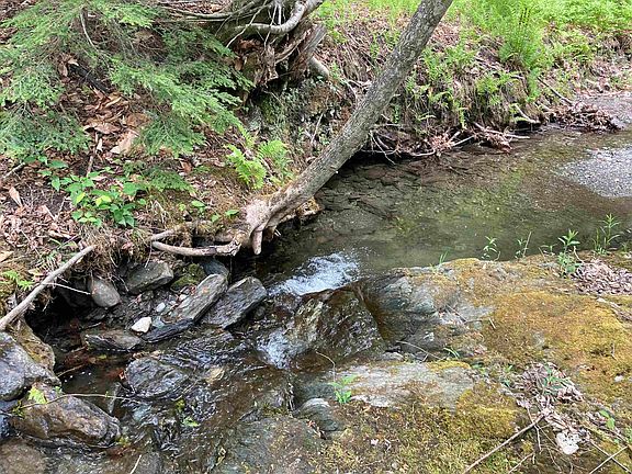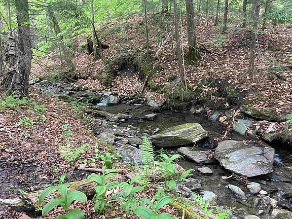 Have you been looking for an affordable piece of land to place a camper on and get away into the woods? Have you and your dogs been looking for a serene place to sit in a stream and relax during warm summer days? Or yearning for an artist's retreat? This 3.7+/- wooded lot, is on a private road, includes a quaint, two-story camp/cottage, and has a stream and stone wall along it's boundaries. It's only 20 minutes to Rte. 89, yet far enough into the country to have the quiet of nature. Please note: there is no septic system connected to the camp, which is also in need of some maintenance. Power and fiber run to the property.
