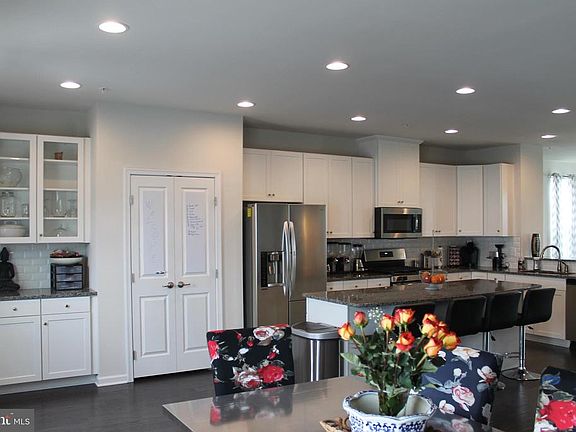 This gorgeous end of Row provides over 2,000 SF of finished space! This home features a 2 car garage, paved driveway, and a fully finished basement. The first floor features a gorgeous powder room , access to the attached garage, plenty of storage space, and a large office with french doors and surrounded by windows beaming in the sunshine. The second floor boasts a huge living room, kitchen, and dining area combo with an open floor plan. The kitchen features stainless steel appliances, granite countertops, a double stainless-steel sink, large arched island with breakfast bar, tile backsplash and a pantry closet . The dining area has a sliding glass door to the rear deck, perfect for relaxing with company. Lastly, the spacious living room is surrounded by beautiful windows and is the perfect place for entertaining guests. The third floor presents a lovely master suite with walk-in closet, full bath with shower stall, soaking tub, and double sink vanity. Third floor laundry right next door to the master suite makes laundry a breeze! The third floor is completed by 2 other generously sized bedrooms with a hall bath featuring ceramic tile. You don't want to miss this newer home, it won't last long!