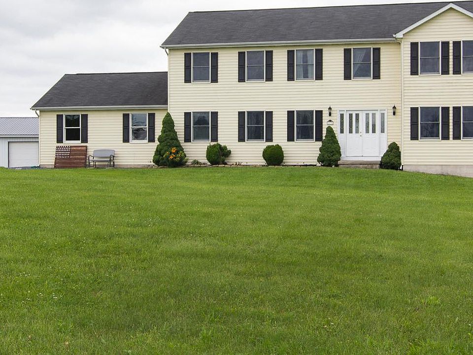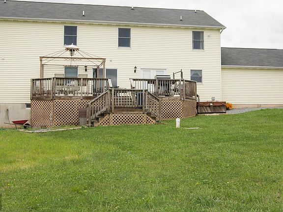 Spectacular views! Beautiful 5 bdrm 3.5 bath home on just under 2 acres. Huge country kitchen and formal dining room. Ceramic tile and wood floors on main level, as well as fresh paint throughout and new carpet on the 2nd level, this home is move-in ready. 2 laundry areas, one on each floor, large rear deck and lovely landscaping. Basement is ready for your finishing touches. Too much to list!