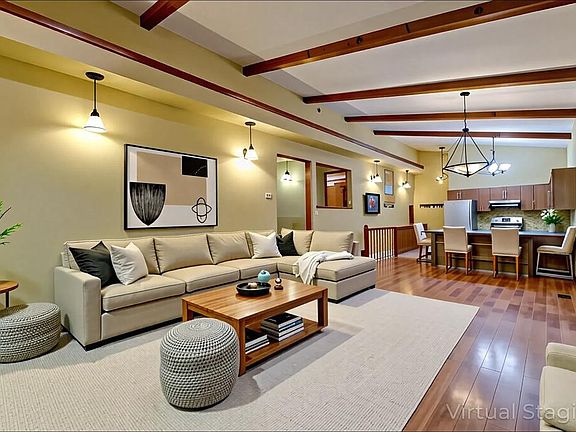Wood-burning fireplaceVaulted ceilingsThree spacious bedroomsLow-maintenance yardCovered porch