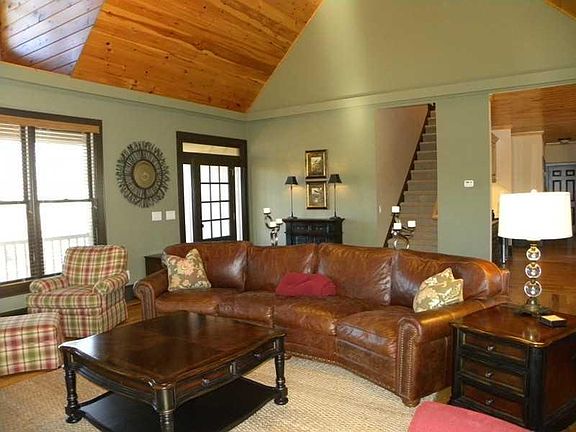 TOCCOA RIVER ACCESS highlights the gated community location of this upscale mountain home. Features include great room with trough listing, butler's pantry, wine fridge, large kitchen island, granite counters, 4 fireplaces, 3 zone HVAC, 2nd garage door for golf cart, and lower level family room/guest quarters. Community offers riverside pavilion, kitchen, kayak launch, pond and trails. A one of a kind community!