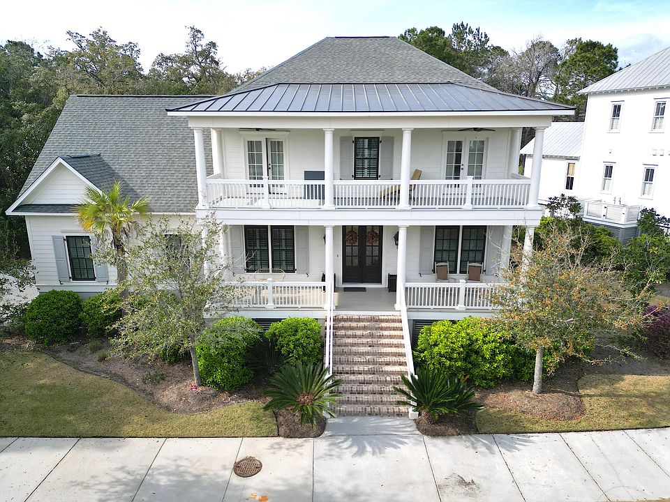 Live your best life in this enchanting Daniel Island Park Manor, boasting 5 bedrooms, 4.5 bathrooms, and a 3-car garage, sprawled across a generous 0.58-acre private wooded lot. With 3711 sqft of living space, this one owner home exudes elegance and charm at every turn. As you approach the front of the home, you're greeted by custom brick stairs and massive double front porches. Walk through the double glass front doors and you enter into the oversized planned foyer, where you are bordered by two spacious rooms. You immediately feel like royalty with soaring ceilings that possess crown molding and gorgeous arched doorways throughout the entire first floor. Off the foyer, the study has French doors and coffered ceilings, offering a tranquil retreat.with built in bookshelves/storage. Adjacent, is the formal dining room, which can easily convert into an additional sitting room with direct access to the kitchen. The foyer also conveniently hosts a half bath. Down the wide hall toward the kitchen, you'll notice a blend of sophistication and comfort with first floor solid core wood doors, pre-engineered flooring, and black hardware. The heart of this home lies in its open kitchen, where Southern charm meets modern convenience. Quartz and Silestone countertops, a large kitchen island, double wall ovens, an additional gas range, and soft-close cabinetry create a chef's dream. The kitchen seamlessly flows into the informal dining area and then through to the sizable family room, complete with built-in bookshelves framing a wood burning fireplace w/ gas start. There's plentiful natural light, and dual sets of French doors, leading to the rear, screened, wrap around porch. Never leave a guest off your list because the rear porch is all encompassing with multiple ceiling fans, an outdoor fireplace, and a swing bed, all overlooking the serene wooded back yard. The inviting owners suite is conveniently located on the first floor, complete with French doors to the rear porch, a tray ceiling w/ceiling fan and a glamorous en-suite bathroom featuring a soaking tub, dual vanities, ample storage, seamless glass tiled shower, water closet and an oversized walk-in owners dressing room/closet. The laundry room is located off the main living area, adjacent to the owners suite. Upstairs, you'll find two bedrooms at the front of the home, each with access to the upper front porch through glass doors, and a Jack-and-Jill bathroom. The bathroom features separate vanities and toilets for added privacy, along with a shared tiled shower and tub. Additionally, there's a large rear bedroom with a walk-in closet. Another bathroom adorns the upstairs which has octagonal tile flooring and a tiled glass shower. On the opposite side of the second floor, is a spacious bonus room illuminated with natural light, boasting a large walk-through closet to the attic which doubles as a huge storage room! Enjoy your privacy in the attached frog, which has its own shiplapped grand entrance off of the first floor living area, with a built-in office nook and access to both the rear screened porch and the garage. The spacious frog features a kitchenette, a full bathroom and a private, fairytale-style balcony accessible through the French doors. Outside, walking around to the rear of the home, the natural stone pavers whisk you through a wrought iron gate to the large, fenced in, serene backyard. Embraced in nature, you will feel like you stepped out of the pages of a story book as you sit on the tree swing, overlooking the fire pit with paver patio surround and a canopy of trees overhead. The large side yard is well manicured and landscaped, offering additional outdoor space for hosting unforgettable gatherings. This home is a rare find, offering a blend of sophistication, comfort, and Southern charm in one of Charleston's most desirable neighborhoods. Come experience your happily ever after. Residents have the opportunity to become members of the Daniel Island Club, offering an extensive clubhouse for dining and event hosting, two golf courses, as well as swim, tennis, and fitness amenities, all within a resort-style environment.