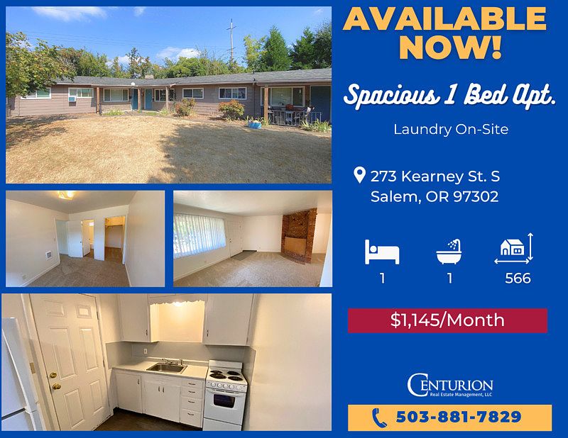 Terms: * Rent: $1,095 + $50 RBP = $1,145/MO * Deposit: $1,100(On Approved Credit) * Application Fee: $68/per adult 18+ * Tenancy: 1 Year Lease * Heat Type: Electric * Note: Non-Smoking Property Pet Policy: * Dog Allowed * Cat Allowed * 2 Pets Max Under 25lbs * $400 Additional Deposit per Pet * Pet Rent May Vary on Paw Score (starting at $45 up to $100) * All applicants must complete the Screening Process (https crem.petscreening.com) Utilities: * Included: Water/Sewer/Garbage * Tenant Paid Utilities: Tenant is Responsible for Electric, Gas (If Applicable), And all Other Utilities Amenities: * Refrigerator * Stove/Oven BUILDING COMPLEX: * 1st Floor Laundry: * Laundry On-site Water Type: * City Sewage Type: * City Landscaping * Owner Responsibility Parking *Off-Street All Centurion Real Estate Management, LLC residents are enrolled in the Resident Benefits Package (RBP) for $50/month which includes renters insurance, HVAC air filter delivery (for applicable properties), credit building to help boost your credit score with timely rent payments, $1M Identity Protection, move-in concierge service making utility connection and home service setup a breeze during your move-in, our best-in-class resident rewards program, and much more! More details upon application. 1. Move-in Special ONLY applies to the current month. (IF APPLICABLE) 2. The application process normally takes 1-3 business days. 3. Must see the property physically before the deposit is made. 4. If you have a pet, ESA or you don't have a pet you must register at https crem.petscreening.com 5. Apply to one property at a time. Pet Policy: Notice to all residents and applicants, everyone must complete the screening process. This is not only for pet and animal owners; it applies to residents and applicants who do not own pets. The pet policy includes caged animals and pets. Additional deposits and monthly pet rents will vary; keep in mind that it is subject to the approval of your petscreening.com profile. You will not be moved into the unit without this completed. Prices are subject to change, we do not guarantee prices, items change, and errors occur. If there is a discrepancy between a price online and a price in the office, supervising property manager shall have the final say. *Due to overwhelming demand we may be unable to respond to your rental inquiry.* INTERESTED IN THIS PROPERTY? * Properties are on a self-showing lockbox and each listing specifies how it is viewed. * Feel free to drive by the property to check it out. "This information is deemed reliable, but not guaranteed." Centurion Real Estate Management, LLC 1365 Commercial St. SE Salem OR 97302