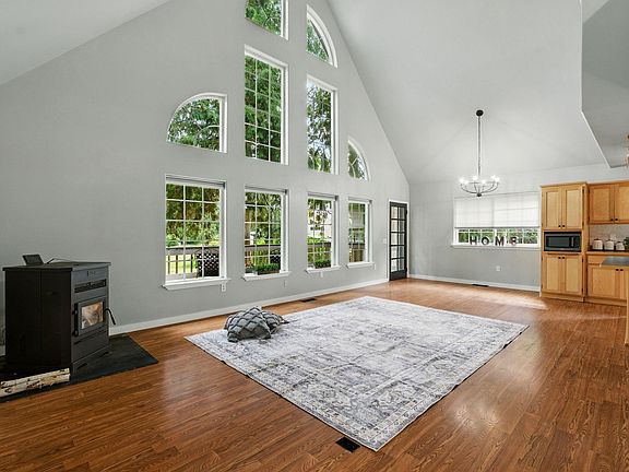 Discover comfort, space, and flexibility in this inviting 4-bedroom, 2-bath home situated on a beautifully treed half-acre lot. Designed with an open layout, the main level flows seamlessly from the kitchen to the living and dining areas—enhanced by vaulted ceilings and oversized windows that flood the space with natural light. Upstairs, retreat to your own private primary suite featuring a jetted tub, serene views, and its own private deck—the perfect spot for morning coffee or unwinding under the stars. The lower level offers versatility with a cozy family room and an additional bedroom, ideal for guests, a home office, or multi-generational living. Outside, enjoy a peaceful backyard complete with a fenced garden, fire pit, and separate studio with electricity and LVP floors—ready for your outdoor hobbies and weekend gatherings.