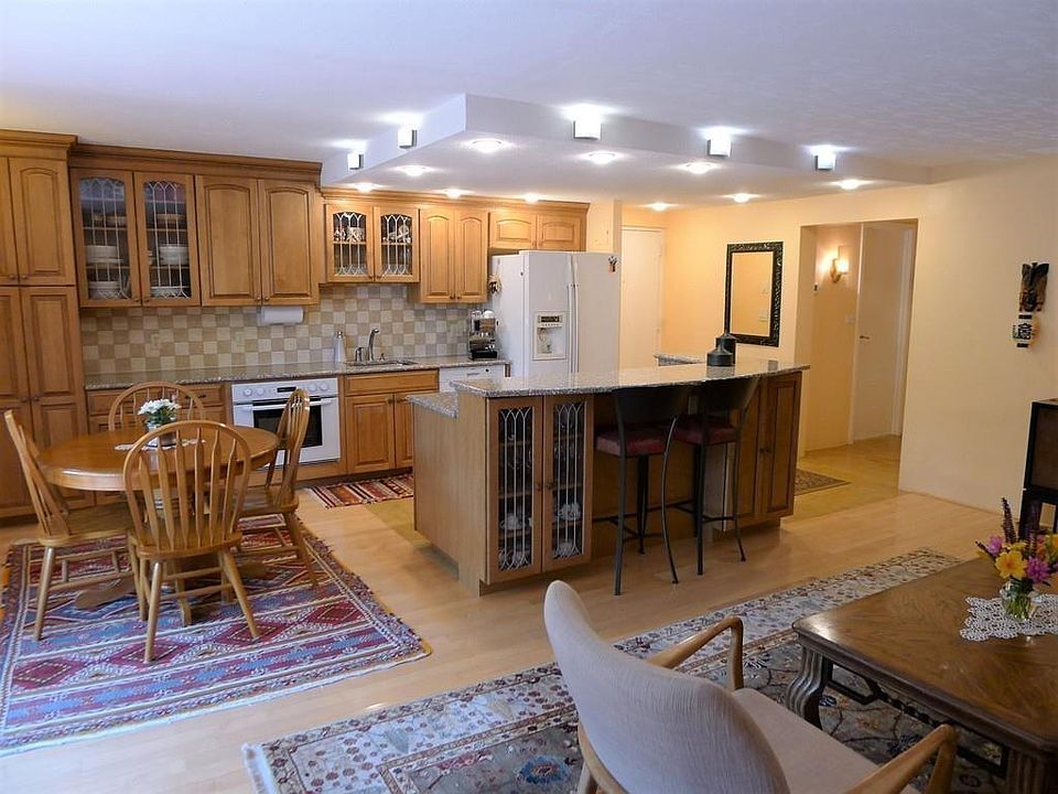 Gorgeous spacious move in ready 2 bedroom condo. Located on the third top floor. Modern open space kitchen and living room. Granite counter tops, marble floor in the kitchen and hard wood in the living room. Beautiful custom Kraft Maid cabinetry with a lot of storage space including glass door cabinets. Kitchen opens up with a breakfast granite top with two high chairs. Sliding door brings you to the good size balcony whit Mediterranean style tile floor. Additional storage space on the balcony. Totally renovated bathroom with Jacuzzi tap, Grohe rain drop shower head and flexible shower, marble sink top, glass wall and beautiful tiles. This unit has two large bedrooms with hardwood floors, bout with plenty of closet space. There is additional shelved storage space in the basement, on site laundry and two deeded parking spaces. Condo fee includes: heat, water, hot water, master insurance and much more. Close to Route 3, train station, shopping, restaurants and South Shore Hospital.