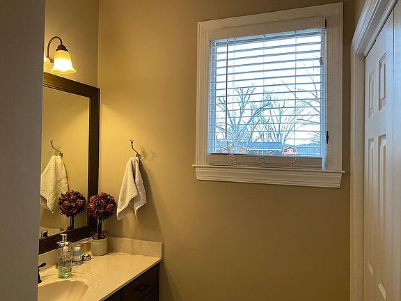 PRICE REDUCED! Gorgeous ranch home with hardwoods throughout. 2 master suites! Stunning living room with fireplace and huge windows! Loads of natural light. Amazing gourmet kitchen! Very open floor plan! Huge bonus room! Massive deck overlooks private wooded area. Across from Lake!