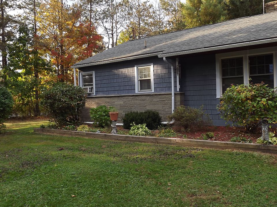 Updated Ranch home nicely cared for w/Updated bath & Kit. Hardwood floors, 2 fireplaces. Sliders in bdrm to enclosed porch. Newer furnace, windows, elec. New roof! Fix up LL for additional living space. 2 flat acres w/open area & woods. Outdoor shed w/heat/elec. Firepits, coy pond, patio areas, camping areas, zipline, swings & other toys in the woods. Unbelievable outdoor paradise!
