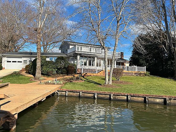 Beautiful lake views on a landscaped lot located on the main channel of Lake Hickory. 2800 square feet with large living room with stone fireplace (gas logs,) dining room and kitchen with bar seating, large pantry/utility room, and lake views.The main level has a large, open living room and dining room area, sunroom/breakfast room, small den or library, and large flexible suite with tiled shower and separate garden tub (could be used as a main level bedroom) . Spacious, landscaped lot has a fenced-in back yard fronting 145 feet of lake frontage and a coveted boat house with lift, kayak lift, and drive-thru garage with concrete ramp to the water. 3 large decks, irrigation system, outdoor shower, driveway gate and generator. Public water and septic tank (assumed 4 bedroom as originally built, county has no records.)