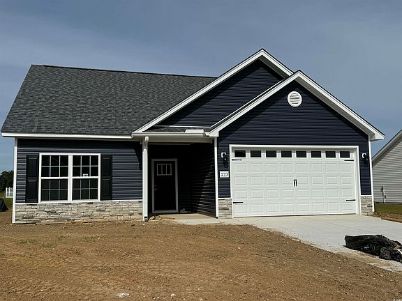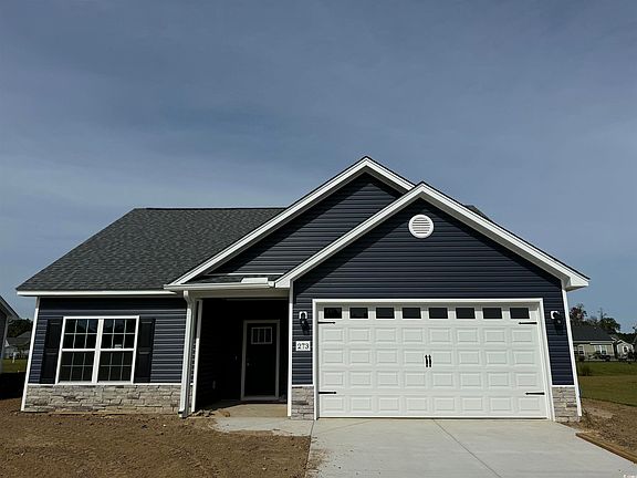 The Haley plan offers a comfortable and convenient living space with three bedrooms, 2 full bathrooms and a two car garage. The interior of this home will have 9ft or vaulted ceilings, granite tops in the kitchen and bathrooms, two kitchen pantries, cabinets with crown, soft close drawers and doors, ceiling fans, LED flushed lighting, pendant lighting, stainless steel appliances, luxury vinyl plank flooring throughout and much more. The exterior will have a stone accent front, rear covered back porch with a ceiling fan, an irrigation system, completely sodded yard with plant beds, screens for the windows and the sliding door, a garage door with windows, two remotes and pull down stairs. The location of Windsor Farms in Conway SC, offers easy access to both the historic downtown area and the Grand Strand beaches. Pictures may vary depending on buyers design choices.