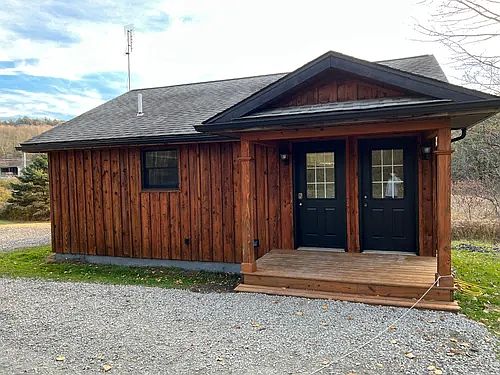 just upgraded very cozy cabin feel. 1 bed 1 bath in the lower level of a duplex. with a brand new bathroom and stainless steel appliances. upgraded light fixtures, and more. creek running through the property and a great yard to enjoy. walk out patio. 15 minutes from Dickson City and Scranton. 10 min from clarks summit. just off exit 201 of I-81. renter is responsible for upkeep of property. including the yard and driveway. they are also responsible for electric and trash