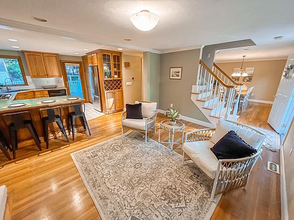 This charming home offers a comfortable and inviting living experience with its 3 bedrooms and 3 bathrooms. The first floor features an open kitchen that seamlessly flows into the living room, which boasts a cozy gas fireplace. A full bathroom with a separate laundry room, a dining room, and a second large living space with front and back bay windows complete the main level. The primary bedroom and bath features its own private staircase for added privacy, while having access to two additional bedrooms and bathroom. The basement provides ample space, with a gas stove. Theres plenty of of storage space throughout the home, including unfinished area in basement and a 10X12 shed. From the basement, you can walk out to a concrete patio with a fire pit, perfect for outdoor gatherings and relaxation.Off the kitchen also features a large deck providing extra outdoor space to enjoy. The backyard and front yard are beautifully landscaped, showcasing established flowers and plants that enhance the overall charm of the property.