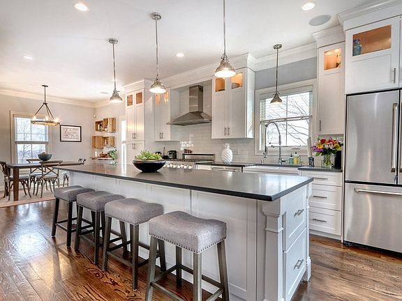 - Kit Dscrp: Flooring - Hardwood, Countertops - Stone/Granite/Solid, Recessed Lighting, Stainless Steel Appliances, Kitchen Island, Open Floor Plan, Gas Stove, Crown Molding, Lighting - Pendant