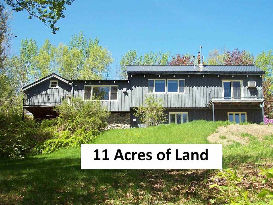 Nice Country Home on 11+ Acres! The main level greets you with a spacious entryway and connecting sunroom. These two areas (both with cathedral ceilings) can be used as a family room or a place for family and friends to gather. The sunroom has a nice southern exposure with mountain views and is complete with the comforts of both a propane stove and air conditioning. The kitchen, dining and living areas all share one large room which features a stone hearth, cathedral ceilings, built-in book shelves, and mountain views. The large master bedroom also has a stone hearth, it's own full bath, French doors to a private balcony, and access to lots of storage. Also featured on the main level are a quarter bath with laundry area, and an attached garage with plenty of storage above. The downstairs level provides backyard access and features another bedroom and bath, a nice exercise area, and a quiet study area with lots of shelving. Outside are 11+ acres of both cleared and wooded land and a super 30x24 garage with lots of upstairs storage. Also, mountain views, fruit trees, a new septic system, a recently updated heating system and roof, and a built-in generator for rare power outages. And, for solar enthusiasts, a beautiful southern exposure! (Lots of photos to view)