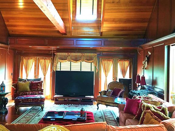 This home is designed for an individual or group seeking privacy and security without compromising on exquisite finishes and elegance. The main house and pool house could accommodate an entourage in style and comfort. The 18 foot iron gates with intercom and camera ensure security and privacy. There are three structures on the property: the main house, pool/spa house with solarium, detached 3 car garage. Multiple fireplaces, pizza oven and full kitchen in pool house as well as a gym, spa and a loft with bedroom and ensuite. The great room in the pool house is magnificent! Rich hardwood cabinetry, floors and wainscoting. Huge two-story stone fireplace. Main house has 4 beds, 3.5 baths, fireplaces, pool house has 1 bed, 2 baths, fireplace, steam, sauna, solarium, vaulted cathedral ceilings, full kitchen and gym. Over 44 acres of amazing manicured parkland, woods with trails for hiking and four-wheeling and Landsman Kill bordering the lower boundary. Central air & heat are independent to both buildings.