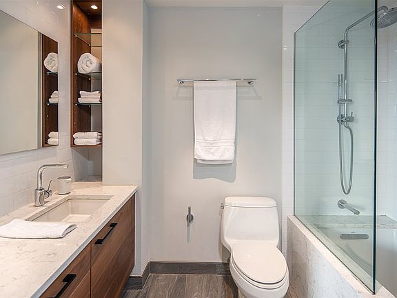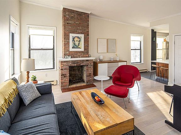 Welcome Home to this Stunning, Sun-drenched, Open Layout Condo in Downtown Jersey City. With High Ceilings, Over-sized windows, and Southern and Eastern exposure, this One Bedroom Corner Unit bathes in natural light. Sleek and modern kitchen with SS Appliances, White Quartz Breakfast Bar, and Under Cabinet lighting. In-unit Washer/Dryer. Newly Renovated and Expanded Bathroom with wood and stone accents. Condo boasts White Oak Hardwood Flooring throughout, and two (yes 2!) Fireplaces - classic brick and white wood in the Living Room and a working Electric Fireplace in the bedroom. Bedroom also has built-in Storage and a perfectly designed Walk-in Master Closet. Versatile Bedroom "Nook" great for an Office or Nursery space. And don't forget to check out the Roof Deck - the perfect 3-Season outdoor space for BBQing and Relaxing. A must-see.