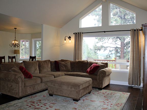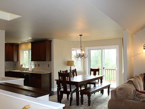 NW Bend home offering 5 bedrooms, 3 baths, 3 car garage with level driveway and master on the main. 3 bed / 2 baths on main. Great room with vaulted ceiling and gas fireplace. 2 bedrooms, bath and game room down with gas stove. Large fenced back yard with great downtown views. Close to downtown and 1st street rapids. Large deck with hot tub. 2,590 Sq feet. .29 acre lot, built in 1997 New A/C, new appliances within the last 4 years including two water heaters. Within the past 2 years - new interior paint, new rain gutters, new garage door.