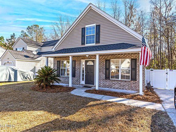Adorable 3 bedroom 2 and a half bath waiting on its new owners! Home is partially surrounded by a wooded lot with no neighbor to the right, and a wooded buffer behind. Entertain your family and friends in the spacious fenced in backyard. The master is on the first floor with two additional bedrooms, the laundry closet, and a shared bath up stairs. All appliances except the microwave purchased in 2019. Newer flooring and countertops throughout. New roof in 2021 and HVAC was replaced in 2017. Extra wide driveway at rear to allow for a future garage. Walking distance to Bluffton schools and down the street from parks and leisure facilities. Close to SAV, HHI and Beaufort. This cute home is move-in ready and will not last long!