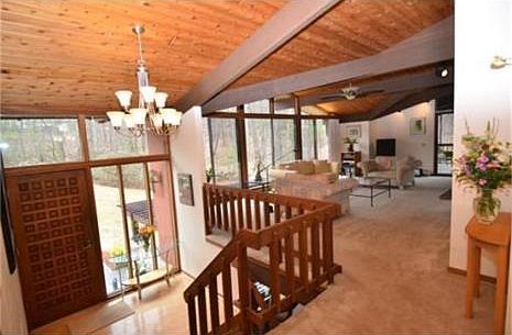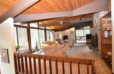 Travel along one of Harvard\\\'s most scenic roads, enjoy the countryside views & impressive neighboring homes. Classic,custom designed Deck House Contemporary is set well back from the road surrounded by 6 glorious acres of landscaped lawn, gardens and private woodlands & bordered by ancient stone walls. Private estate-like setting is ideal for nature enthusiasts and active families with access to hiking, biking and all that Harvard offers. Open concept design flows seamlessly inside to out, with walls of windows showcasing beautiful natural surroundings & a delightful screened porch for summer entertainment. Soaring cedar ceilings, natural mahogany woodwork, post and beam construction create a light spacious and comfortable feeling. The versatile floor plan offers a master suite on the main level. A striking living room with floor to ceiling fireplace opens to dining room and kitchen. Fabulous entertainment rooms & a suite with 2 bedrooms are on lower level. 3 car garage w/ workshop.