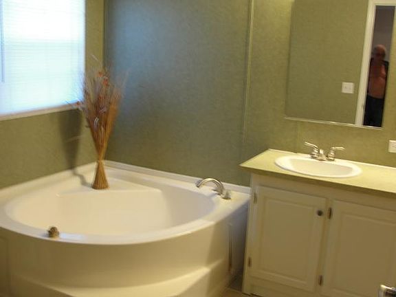Split floor plan, garden, master bath with large tub, great room, great view across farm, 2 car garage.