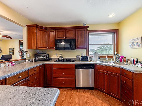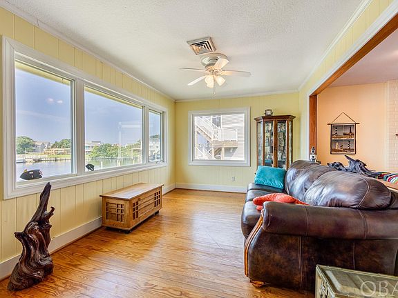 Experience the ultimate in canal-front living with this lovingly maintained home, offering expansive water views from nearly every room. This 3-bedroom, 2.5-bath residence is perfectly positioned at the entrance of the harbor, where you can enjoy the daily parade of boats right from your doorstep. With 80 feet of bulkheaded water frontage, this property is a boater's dream, complete with a boat lift and split-level dock equipped with power and water. Inside, over 1,800 sq ft of living space welcomes you, featuring a spacious great room and dining area that opens into a sunlit sitting area. A wall of windows captures stunning water vistas, creating a serene backdrop for your everyday life. The open kitchen features stainless steel appliances, a gas cooktop, wall oven, walk-in pantry, and elegant solid surface counters. The large master suite offers double closets and breathtaking water views. The guest bedroom and a versatile third bedroom/office open to an expansive deck, providing yet another spot to enjoy the tranquil scenery. Additional features include wood laminate flooring, a cozy gas fireplace, and a built-in speaker system in the main living area. On the ground level, you'll find a heated and cooled multipurpose space, along with a laundry room and half bath. The spacious 2-car garage doubles as a versatile workspace, complemented by the ground-level area. Plus, a whole-house generator with a warranty ensures peace of mind during any storm. Step outside to your backyard oasis, where you can enjoy the dock, garden, or even rinse off under the summer wisteria in the outdoor shower. The fortified roof, installed in 2020, adds an extra layer of security to this already impressive home, embodying the true Outer Banks lifestyle. Located in the desirable Colington Harbour, the community offers a gated entry, a spacious sound-side park with sandy beaches, a playground, picnic areas, a basketball court, and a boat ramp. This home is a must see!