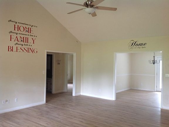 Nice ranch style home, located on almost an ACRE lot in Jones County. Open floor plan, with split layout, Master on one side & 2 nice size bedrooms on the other. Great Room, features cathedral ceiling, wood burning fireplace & open to the dining area. The garage has been converted to an all purpose room, but can easily be converted back to a 2 car attached garage. No carpet, wood laminate flooring thru-out, except both bathrooms have ceramic tile. Home needs a little TLC, but has great potential. No City Taxes, county water, septic tank, total electric. Call today to see!