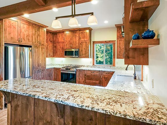 If you're looking for a home that checks all the boxes, this is it—comfort, style, and views that will leave you speechless. This Stunning 2020 custom-built home has been thoughtfully updated and is truly better than new. Nestled on 2.92 acres in the coveted Paradise Valley, this private sanctuary is accessed through a secure custom elk steel gate, offering a rare blend of peace, privacy, and breathtaking views to the west. Designed with exceptional attention to detail, this executive-style home seamlessly integrates modern comfort with natural beauty. The spacious layout was thoughtfully crafted to maximize the stunning views, with an open-concept living area that perfectly complements its "contemporary meets rustic" aesthetic. Rich custom Alder cabinetry graces the kitchen and continues throughout the home, enhancing the charm of each of the three bedrooms and two baths. Ideal for entertaining, the expansive living room effortlessly flows into the chef-inspired kitchen, creating the perfect space for family gatherings and holiday celebrations. The two-tier granite breakfast bar is a focal point, offering ample space for guests to gather or for little ones to pull up a chair and enjoy. The master suite is a true retreat, featuring an elegant ensuite with granite finishes and a custom-designed walk-in shower. His and her closets provide plenty of storage, completing the luxurious feel of this private sanctuary. Two additional bedrooms and a conveniently located central bath round out the living space, ensuring both comfort and functionality for family or guests. The property also boasts a well-maintained sprinkler system, an attached two-car garage, and an electric vehicle (EV) charger for added convenience. Located on the edge of town, yet surrounded by the tranquility of the countryside, this home offers million-dollar views and the perfect balance of seclusion and accessibility.