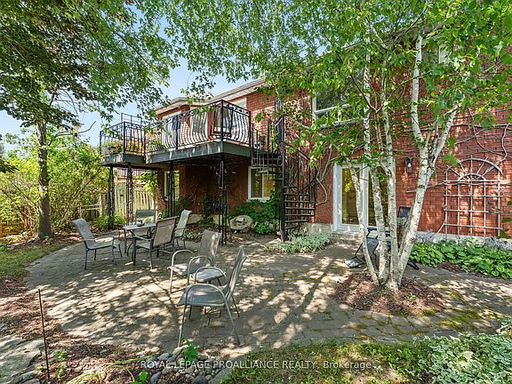 Your private nature retreat in one of Cobourg's most desirable neighbourhoods. This exceptional property backs onto a greenbelt while offering convenient Highway 401 access; the perfect balance of tranquility and connectivity. Nestled on a secluded lot adorned with mature trees and thoughtful landscaping, this home invites you to embrace the beauty of indoor-outdoor living. Step through the main floor and onto your private terrace, where the soothing sounds of nature await. Below, a second walkout from the finished basement leads to a serene patio overlooking your personal pond, flowing gardens, and the lush ravine beyond. Bird enthusiasts will appreciate the variety of wildlife that visits this natural sanctuary, while the established trees provide welcome shade during summer months. Inside, the heart of the home features a spacious eat-in kitchen that flows seamlessly into a welcoming family room anchored by the natural gas fireplace - ideal for both everyday living and entertaining. The main floor also offers a bright living room with an elegant bay window showcasing the front garden views. This flexible space can easily accommodate both living and dining areas to suit your lifestyle preferences. Retreat to one of three generously-sized main floor bedrooms, including a primary suite complete with walk-in closet and private four-piece ensuite. The main level is thoughtfully designed with an additional four-piece bathroom and convenient laundry room with direct access to the two-car garage (currently divided but easily converted back to an open configuration). The mostly finished lower level presents endless possibilities with its large family room, full kitchen, additional bedroom and dedicated den/office space. Pamper yourself in the luxurious four-piece bathroom featuring both a jetted soaker tub and separate shower. A second laundry area in the basement utility room adds exceptional convenience for multigenerational living.