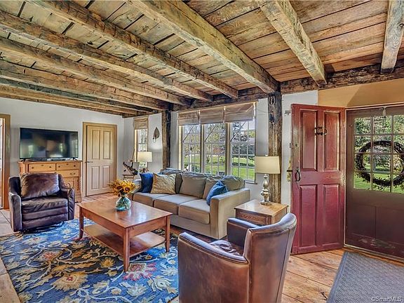 Engulf yourself in history on this 314-year-old homestead. Upon arrival, you will first be captivated by the 28 acres of beautiful land, allowing you to raise animals, grow food, or begin a winery. Currently operated as a blueberry farm, with 700 blueberry bushes it is one of the oldest operating farms in the country. Stroll through the fields while taking delight in your private, storybook setting. Both the main house and the guest house have been restored to museum quality, maintaining unique historic features while upgrading to todays amenities. The rustic wood beam ceilings and wide plank floors in the main house are a highlight in every room. The kitchen is open to the living room, where light streams in and a brick fireplace keeps you cozy on cold evenings. Another fireplace in the dining room sets the stage for intimate dinner parties. Bathrooms have been beautifully renovated. Additional features include historically accurate windows installed with antique glass and a brand new engineered septic system for both buildings. The guest house is a gem, which started with a 1750s building that was restored as a 17th century stone ender with a walk-in fireplace. The workshop is approximately 23x46 while the barn measures 44x18 and has two stalls. The location is ideal, close to beaches, Mystic, casinos, and highway. The entire property is filled with history and distinctive detail, not to be found anywhere else. Call today for private or virtual showing.