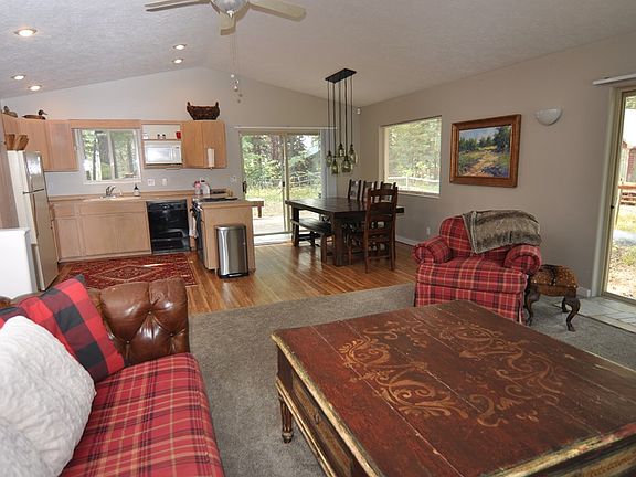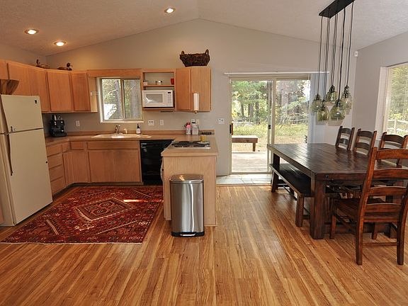 Great home in the Rio Vista neighborhood, with almost 2000 sq ft, that sits high above the street with views of the woods. This home features two mastersuites, 3 baths & vaulted ceilings that create a spacious feel with lots of windows to bring the outdoors inside. The open concept living and dining area opens into a large kitchen with plenty of cabinets for storage and there is a pellet stove to keep you warm on those cold winter nights. The lower level has a large bonus/family room with a sleeping area and endless possibilities. Mature trees dot the large fenced back yard and there's an outdoor deck that opens off the dining room for summer entertaining. Has an oversized two car garage. All of this close to town, Payettte Lake, Brundage ski area and the Bear Basin trail system.