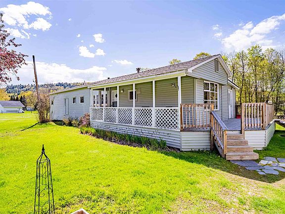 Pull up to this beautiful riverfront location, this 2 bedroom 1 bathroom mobile home is located right on the Huntington river. Come and relax on your front porch or back deck with your coffee. Step into a spacious paneled living room with lots of natural light from the many windows. The living room with well maintained hardwood floors opens into a large kitchen and dining area. The built in shelves in the kitchen area can provide plenty of storage and pantry space for all your needs. The kitchen opens to a sunny wood paneled sunroom where you can enjoy nature even during the chilly Vermont months. The 2 bedrooms one with carpet and one with hardwood floors are located right next to the full bathroom with double sink vanities and a large tub. The home has a detached 2 car garage that provides plenty of storage space. Located on a private lot on the river you can enjoy the peace of nature. Huntington is a beautiful Vermont town that offers a rural feel with a wonderful community. Come see this home for yourself!