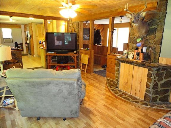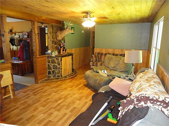 Welcome home to your piece of the outdoors! This home is very warm and inviting. Large front deck to enjoy your cool evenings. The front door opens to a large entryway that is wide open. The living room features a decorative fireplace that you could add an electric heater to. The large kitchen features under cabinet lighting, plenty of counter top space and cabinet storage, along with a pantry. The dining room has a cathedral ceiling. Master bedroom features an en suite full bath of it's own. Downstairs you will find a wood burner connected into the duct work to heat your entire home with wood. The Wood barn is large enough to keep all of your wood dry for the winter. High ceilings in the Huge Basement allow for you to finish it into additional living space. The yard is level and backs to a nice stream and mountain laurel. 2 large sheds and one small shed on this property, along with the 3rd barn for fire wood.