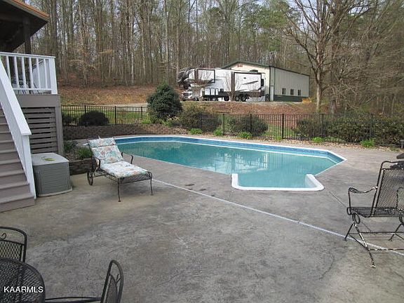 Well maintained one owner house with extra storage and inground pool on 2 .2 acres. Lots of outdoor living space surrounding pool. 2 detached garages with workspaces and 10,000 lb lift. 10 ft tall garage doors in main workshop. Great floorplan with spacious great room with vaulted ceiling. Master on main. En suite has garden tub and shower. Kitchen has crown molding and granite counter tops. Great location (only 20 min traffic free drive to Knoxville) Beautiful landscaping with mature specimen. Basement has a full bath and is heated/cooled for extra living space. Large bonus on 2nd floor. Make plans to see this one!
