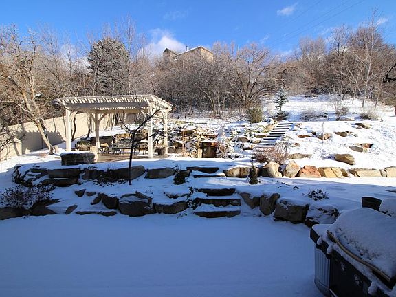 - landscape: Terraced Yard, Scrub Oak, Landscaping: Full, Mature Trees, Waterfall, Vegetable Garden