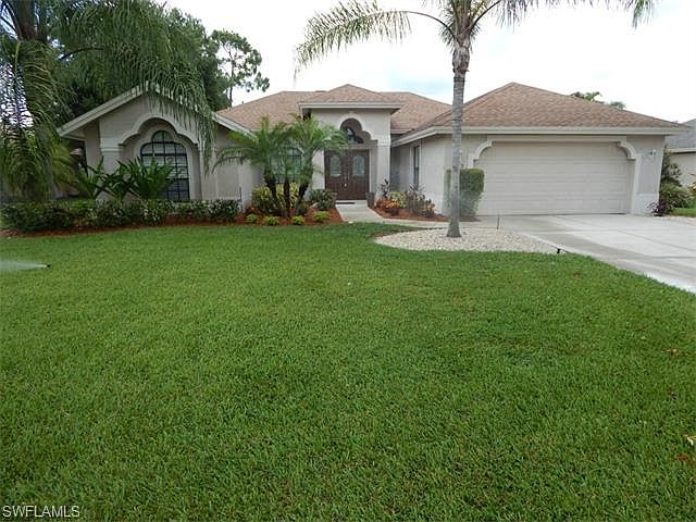 This bright, open 4 bedroom, 3 bath, tiled throughout pool home is located in Sawgrass, a newer subdivision of approx. 25 homes, with very low HOA fees, located on a quiet cul-de-sac of Palm River near La Playa golf course. This family friendly community is in a A rated school district, 4 miles to Delnor Wiggins Beach, close to shopping, restaurants etc. This home has a nice screened in pool area, very private back yard, plantation shutters, corian counter tops and nice large tile. TENANTS JUST VACATED. HOME IS BEING PRESSURE WASHED, LANDSCAPED, NEW MULCH, DEEP CLEANED AND FRESHLY PAINTED.