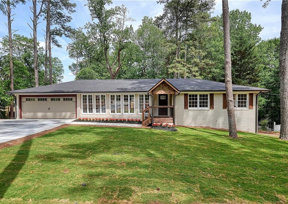 Your next home beckons you! You will appreciate this elegantly renovated 3 bed, 2-bath home that sits on a 0.75 Acre lot. It will captivate you with your first step into the freshly stained new front deck which leads into a large open concept. You cannot miss the bright living space with floor to ceiling windows. The dining area leads to a completely renovated kitchen with premium granite countertops, a bar area and a large Farmhouse sink. The Pantry and laundry are conveniently located for ease of access. The Master bedroom with his 'n' her closets compliment the elegantly appointed bath room. Contemporary electrical and plumbing fixtures are installed throughout. Professionally refinished hardwood in light hues are installled. The new owner will enjoy peace of mind of new appliances, HVAC system and water heater. Head downstairs to an enormous unfinished basement which can easily be finished into a family entertainment area, multiple bed rooms or a home office. The opportunities are endless! The front yard has been elegantly curated with fresh Sod and flowerbeds. Riverstone pebbles adorns the new driveway which leads into a 2 car garage with space to spare. This home sits on a large backyard and provides the buyer multiple hosting & entertainting options. The large upper deck looks over a large new concrete pad, ideally located for a Gazebo, Pergola or a firepit. The lot has been graded and is ready for the buyer's creativity. This home is conveniently located near highway access, minutes from Roswell Mills, and walking/biking trails at the Chattahoochee National Park/Nature Center. This is agent owned listing.