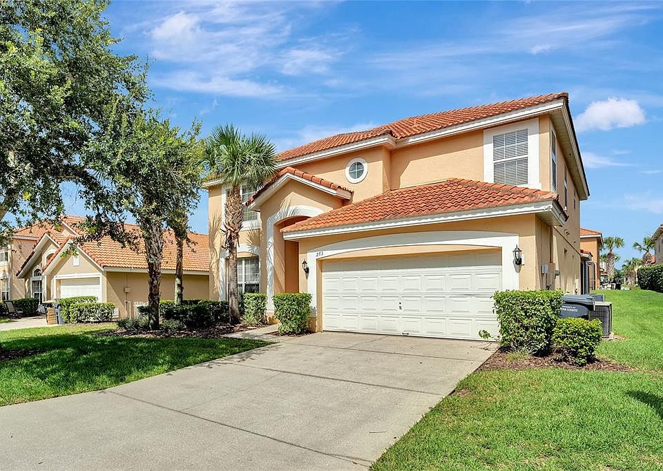 Back on the market. Experience this delightful expansive furnished Mediterranean style home located in the manned gated resort community of Solana. This home is perfectly situated right across the street from the tranquil settings of Solana Clubhouse and its amenities. This two-story home features a barrel tile roof, six bedrooms, five and half bathrooms, formal living and dining room combination separated by elegant archways, an impressive family room with high ceilings, spacious kitchen with nook, and sliding doors overlooking the heated pool/spa and backyard areas from the kitchen and family room. Enjoy your choice of outdoor living space with the combination and comfort of a large lanai and screened enclosed pool/spa area for entertainment and relaxed settings. The spacious Master suite is just off the family room. The Master bathroom includes a garden tub and separate shower, built-in vanity, and walk in closet. The upstairs includes a comfortable loft, a walkaway overlooking at the family room, and five bedrooms with three bedrooms with their own ensuite bathrooms. A private game room is offered on the first floor for additional activities and fun. More fun-filled activities await just across the street at the Solana Clubhouse, including a fenced playground, activity area, sand volleyball, game room, fitness center, large resort style community pool, Tiki bar, mini golf, and sundry shop. Solana includes 24hr gate guard security. Upgrades to this home include freshly paint inside and out, new hot water heater, new pool heater, and newly replaced screen enclosure. This home is located just a short drive away to Disney World and Universal Studios. One-year Shield Complete Home Warranty with American Home Shield included! This property may be under audio and visual surveillance.