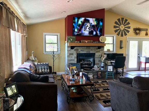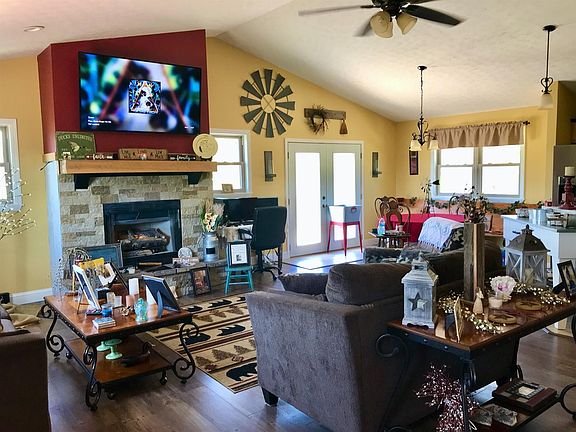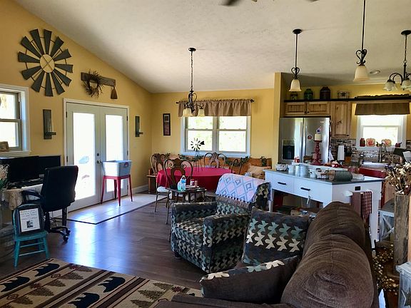 Come view this charming 3bd/2ba home that sits on 66+/- acres. Has an open floor plan. A 12'x16' Master Bedroom with an attached 11'x10' Master Bath. Kitchen has all Whirlpool stainless steel appliances (range, dishwasher, microwave, and refrigerator). Washer and dryer will be included in the sell. Has a large propane log fireplace and propane wall heater in hall way. Home has a large deck that overlooks the acreage and pond. Property adjoins the National Forest. A great place to hunt, run cattle, four wheel or ride your side by side. There is a small hunters cabin and shed on the property. The kitchen island, long church pew, and hanging TV's can be purchased separately.