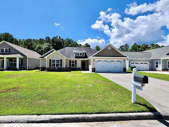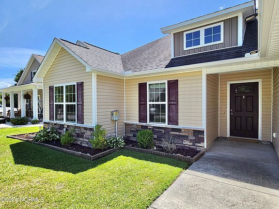 Welcome to 273 Station House Road in the desirable Croatan Crossing neighborhood of New Bern, NC. This charming home features 4 bedrooms and 2 bathrooms, perfectly situated on a spacious .32-acre lot. As you approach, you'll be greeted by a paved driveway, a two-car garage, and a covered porch. Step inside to discover an open living room with vaulted ceilings, luxurious LVP flooring, and a cozy gas fireplace. The modern kitchen boasts white cabinets, recessed lighting, stainless steel appliances, and a walk-in pantry. Enjoy meals in the eat-in dining area overlooking the backyard. Conveniently located off the kitchen is a laundry area with built-in shelving. The primary bedroom offers tray ceilings and an en-suite bathroom complete with dual vanities, a soaking tub, a walk-in shower, and a generous walk-in closet. The three additional generous sized bedrooms have plush carpet and reach in closets, and all share a full-sized bathroom. Outside, you'll find a large wood deck perfect for entertaining, all within a fully fenced backyard. NO CITY TAXES! Conveniently, located between New Bern and Havelock making you a short drive to Historic Downtown New Bern and MCAS Cherry Point.