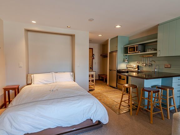 Attached to the Sugarloaf Sports & Fitness Center with covered parking garage. Murphy bed, built-ins for storage, Bigelow Mountain facing deck and adorable kitchen with breakfast bar. Conveniently located, with easy access to Snubber mid station & trail, plus dining and shopping nearby, making it an ideal location for enjoying all that Sugarloaf has to offer!
