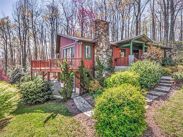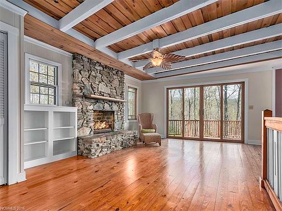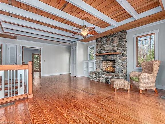 Private Lake Sheila retreat overlooking the mountains above one of Saluda's finest natural gems. Enjoy the view from 2,400 feet from the comfort of this spacious, well-maintained home. Architectural details throughout will delight your senses, including two stone fireplaces, hardwood floors, and striking wood beams. Open floor plan and multiple decks provide plenty of space for relaxing at home and entertaining with ease. Property is fully fenced and features professionally landscaped grounds, flat yard, perfect for people & pets with plenty of room to roam. Surrounded by the preserved and protected Greenville Watershed, this home is a perfect mountain getaway. Guest bedrooms and living area with private walk outs allow for visitors' privacy or easy multi-generational living. Property entitles you to privileges to use 28-acre private Lake Sheila.
