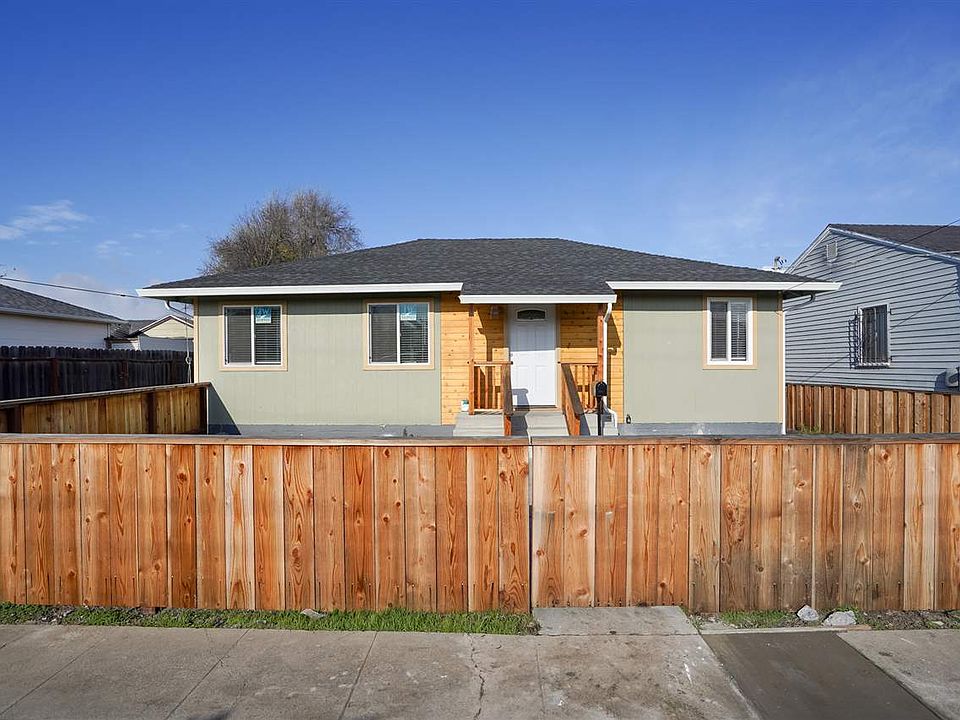 This ranch-style home is move-in ready with 4 bedrooms, 2 bathrooms and loaded w/ modern updates. The open living/dining room features newer energy efficient windows, durable vinyl floors and recessed lighting. The updated kitchen has newer stainless steel appliances, long quartz countertops, designer backsplash, double basin sink, and newer wood cabinetry. Bedrooms boast large windows, sizeable closets; any could make excellent home office. The bathrooms have been updated w/ newer vanities, shower-tub and tile surround. There is a grass lawn in front and back yard. Plus a 1 car garage w/ plenty of room for extra storage and a long driveway that was recently paved. Other notable updates include new wooden perimeter fence, front door, new siding, new interior and exterior paint, newer roof and gutters, and new window frames. Just mins from Oakland Airport, shopping, Costco, golf course, parks, BART, and on ramps to highway 880.